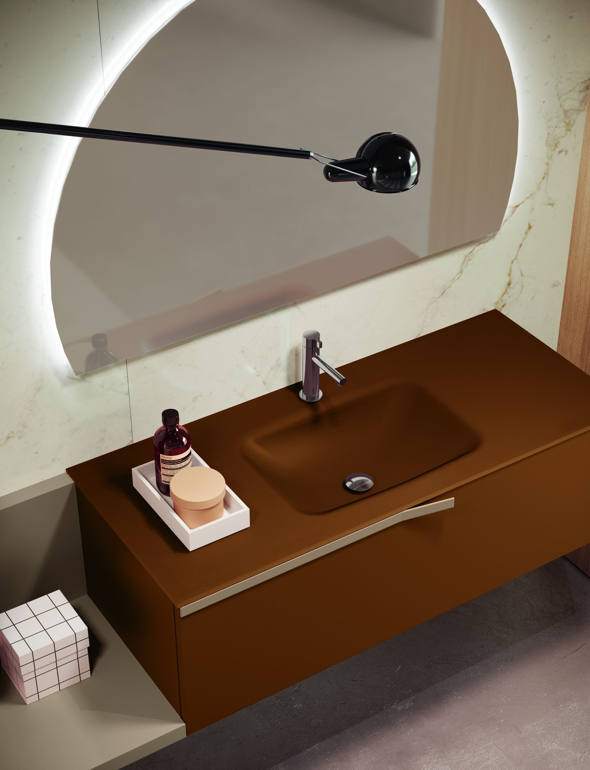 Re-Start Line is the most flexible option in the collection, designed for a fully customizable bathroom. From push-pull doors to fronts with applied handles, every detail expresses a personal style. It offers maximum design freedom with a made-to-measure approach.